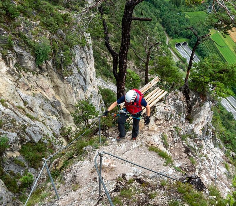 Der Klettersteig Geierwand kann bis auf wenige Tage im Jahr fast immer begangen werden. In Haiming bei Mageerbach wo sich der Parkplatz befindet, sieht man schon meistens die Kletterer über der Autobahn beim Klettern. Nicht zu vergessen ist aber an heißen Sommertagen früh zu starten oder erst am späten Nachmittag.