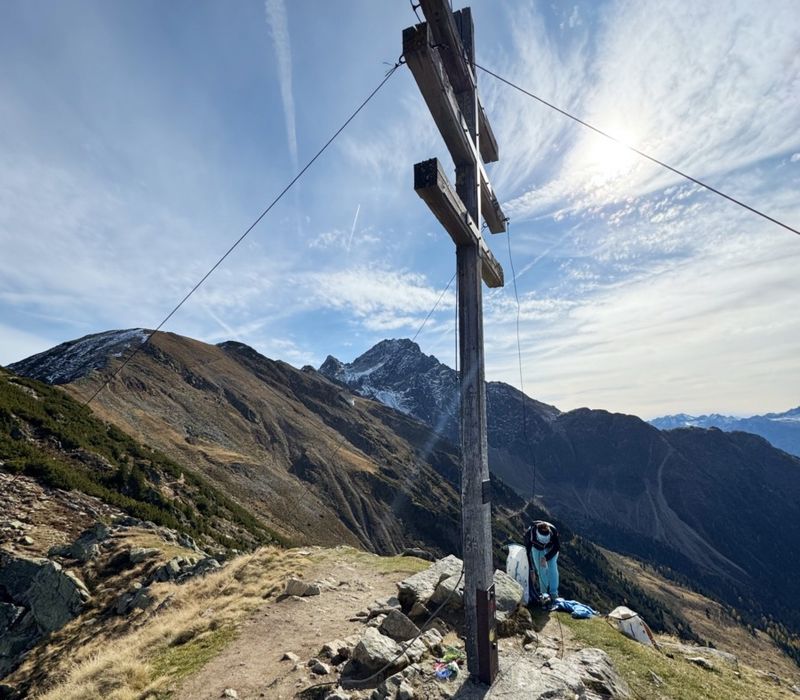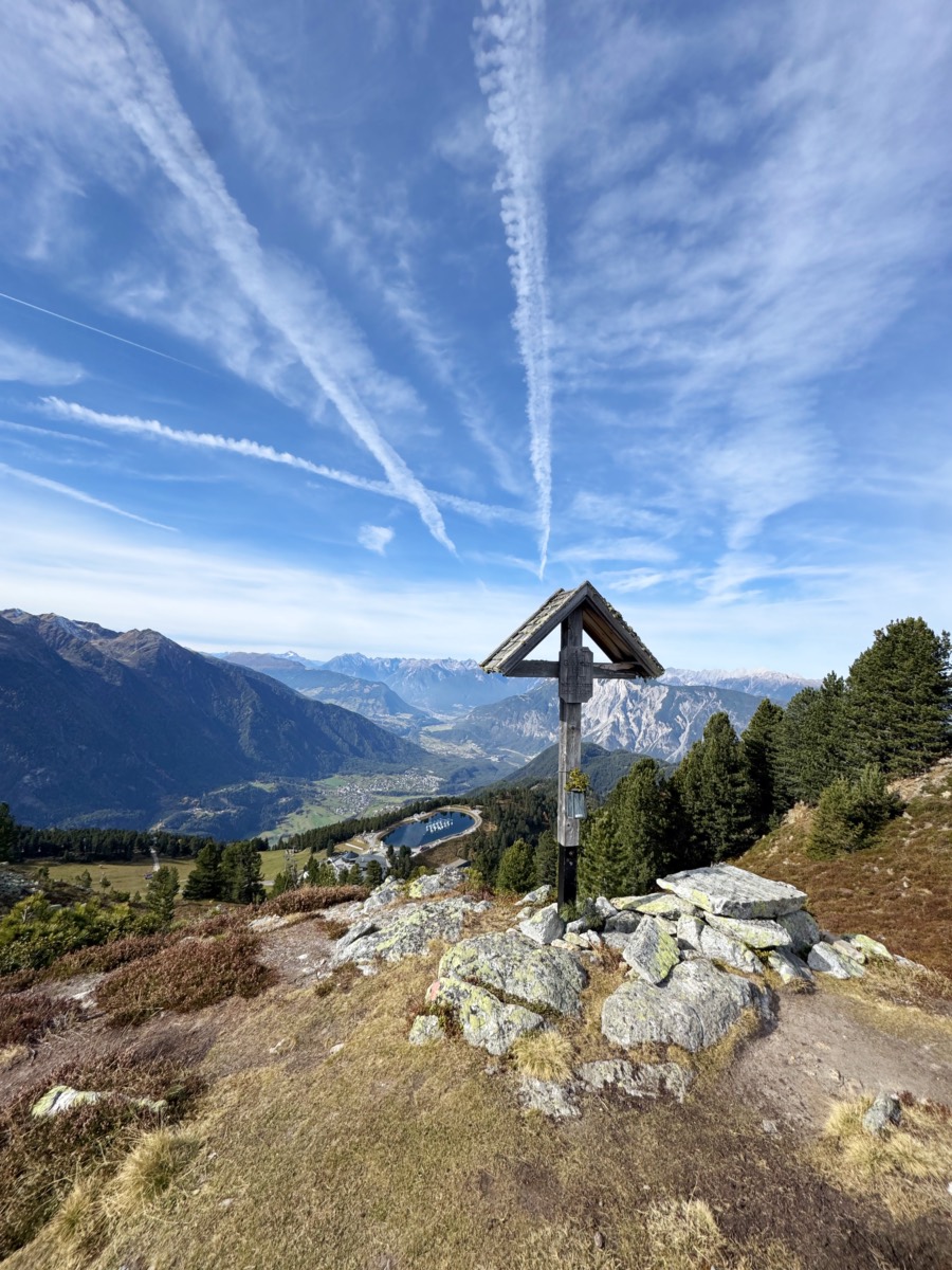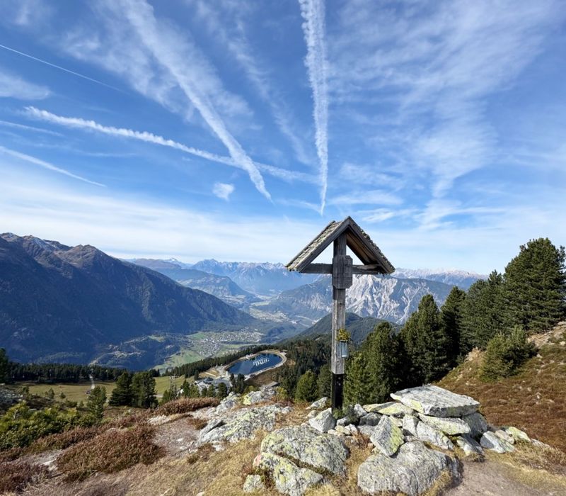 Am Ende des Klettersteigs erreicht man das Gipfelkreuz des Roßkopfs. Dort wird man mit einem atemberaubenden Panorama über das gesamte Ötztal, den Piburger See und der mächtigen Nordflanken des Nördlichsten 3000er den Acherkogel belohnt. Ein unvergesslicher Moment, der jede Anstrengung wert ist.